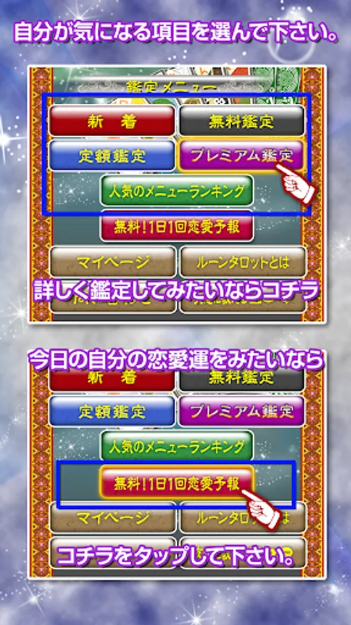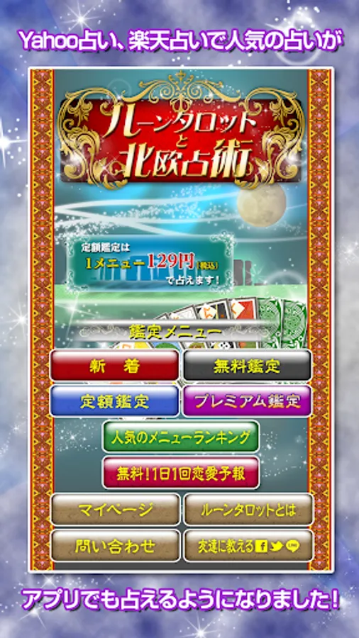 アプリには70以上の鑑定メニューがございます。