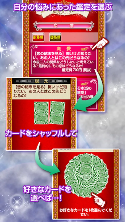 本格的なタロット占いを簡単操作で手軽にご利用いただけます。