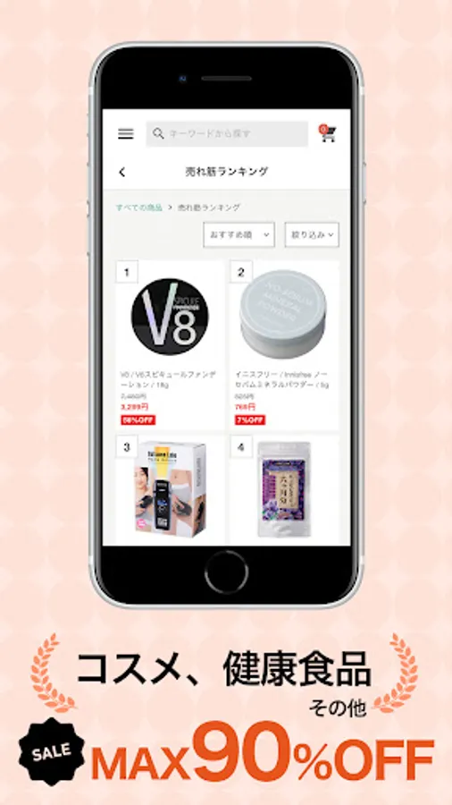 Search for the cosmetics you are interested in by keyword or category and purchase them as they are!
