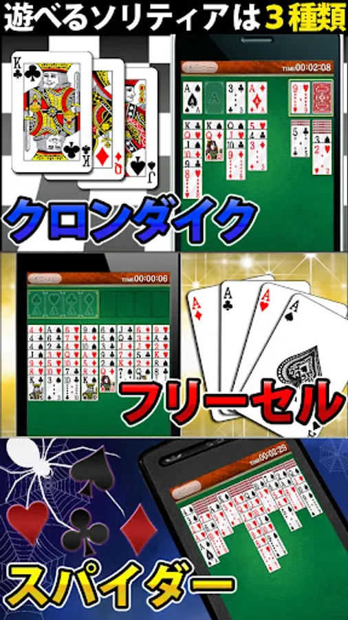 3 types of play Solitaire "Klondike", "free cell", "Spider Solitaire"!