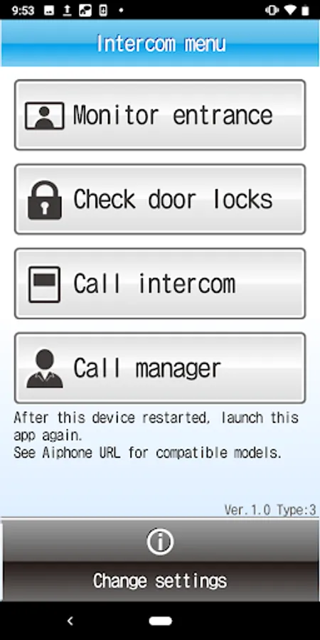 ・The app may undergo forced termination in the event it does not connect with the intercom for a long period.