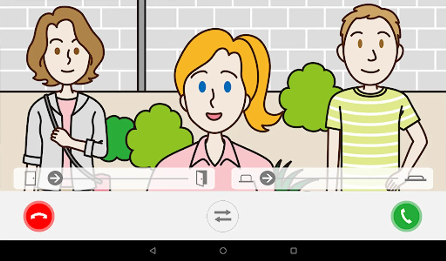 Respond to calls from the entrance station, see the video and talk with a visitor. Answer a call from the guard station and talk to a guard. Unlock your door from the application. View visitor recordings stored in the tenant station. Connect from anywhere using Wireless LAN or 4G network.