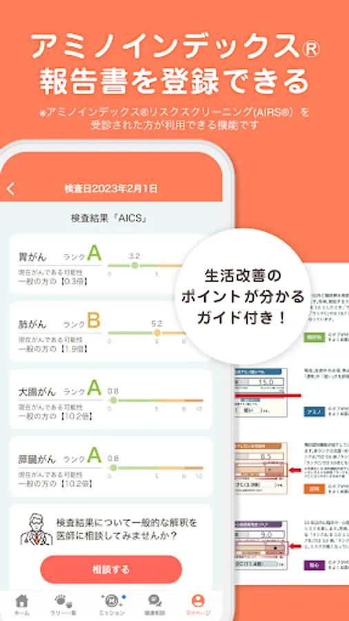 If you are an "AminoIndex Risk Screening" ("AIRS") candidate, you can earn miles by recording the "AminoIndex" report in the app (account registration required).