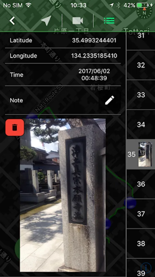 My Adventure tracks your route while you are travelling and stamps photos you take onto the map so can see exactly where you have been and what you saw.