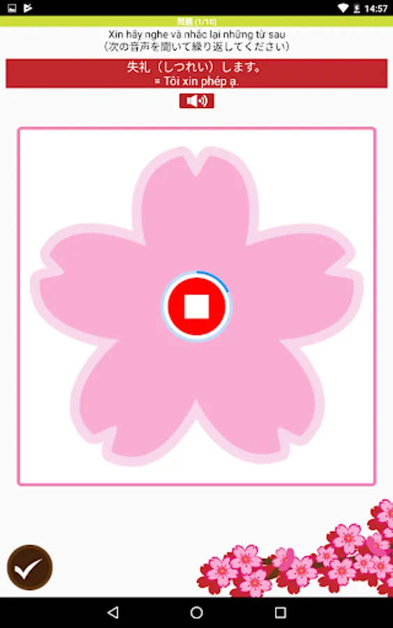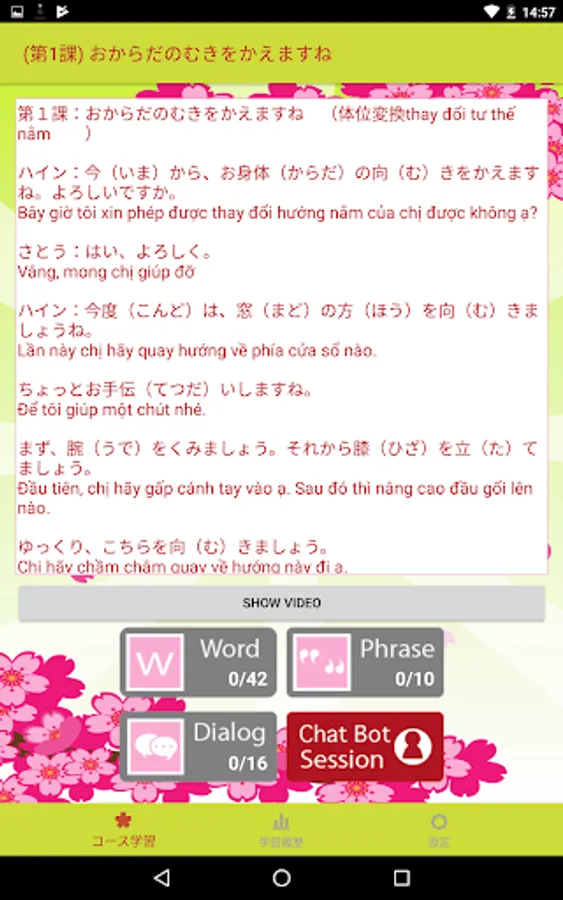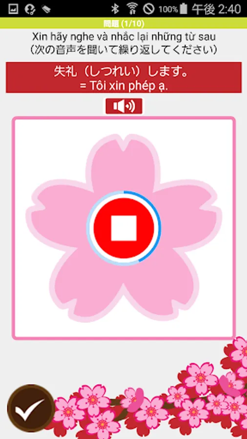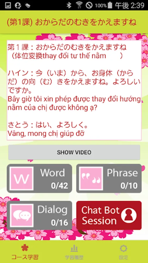 (2)日本語を習得するためには、繰り返し暗記して練習することが必要です。このアプリでは、スマートフォンを使って、いつでも、どこでも、簡単に、繰り返し対話練習をすることができるように、開発しました。
