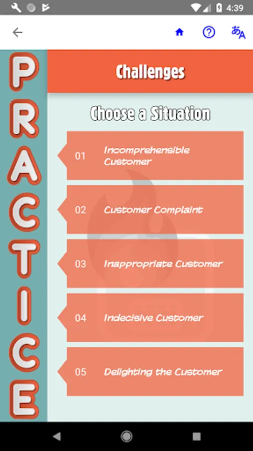 A range of dialogues covering basic situations and common challenges, which you can roleplay with a computerized customer.