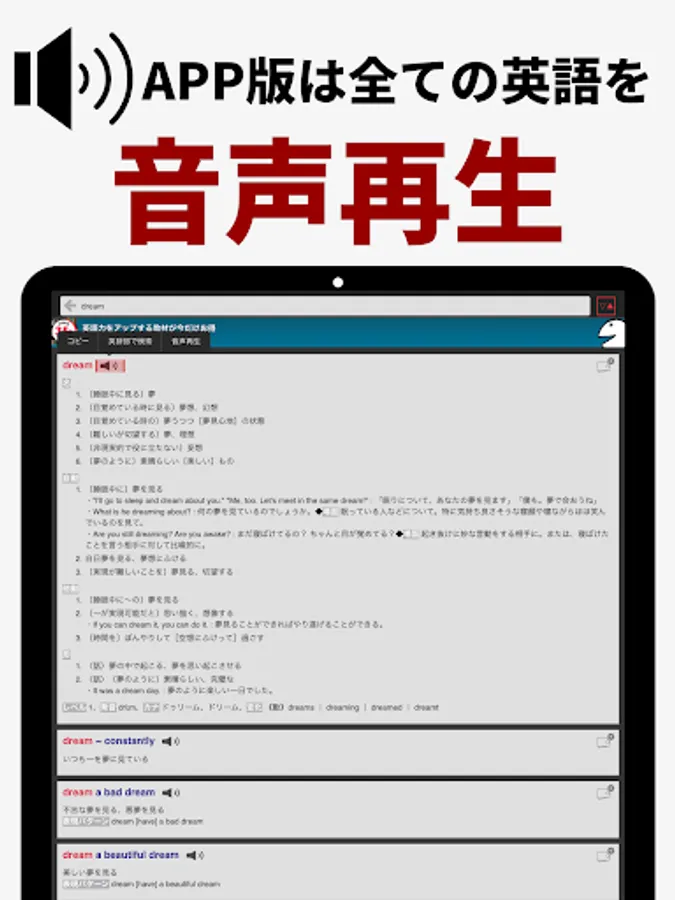 ・Phonetic symbols that show how to read and accent English words, and voice pronunciation function