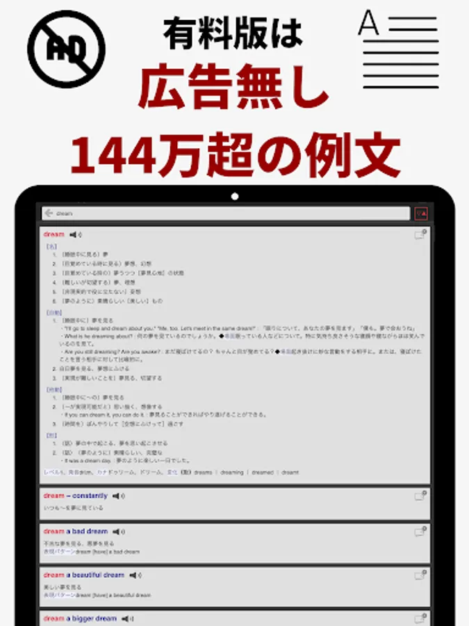 ・English-Japanese/Japanese-English mixed dictionary that allows you to search by mixing English and Japanese