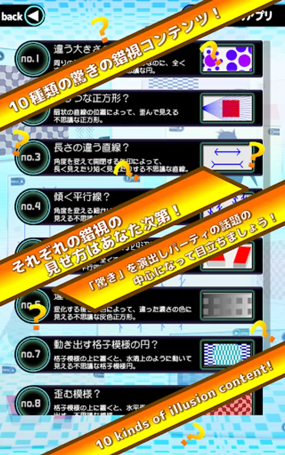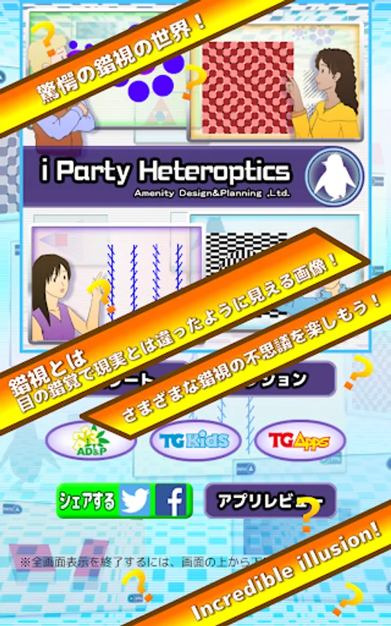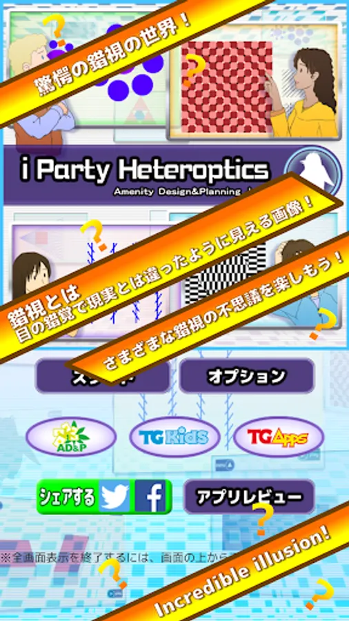 iPartyHeteroptics is a profitable application to be able to experience ten kinds of heteroptics contents by operating it while making it.