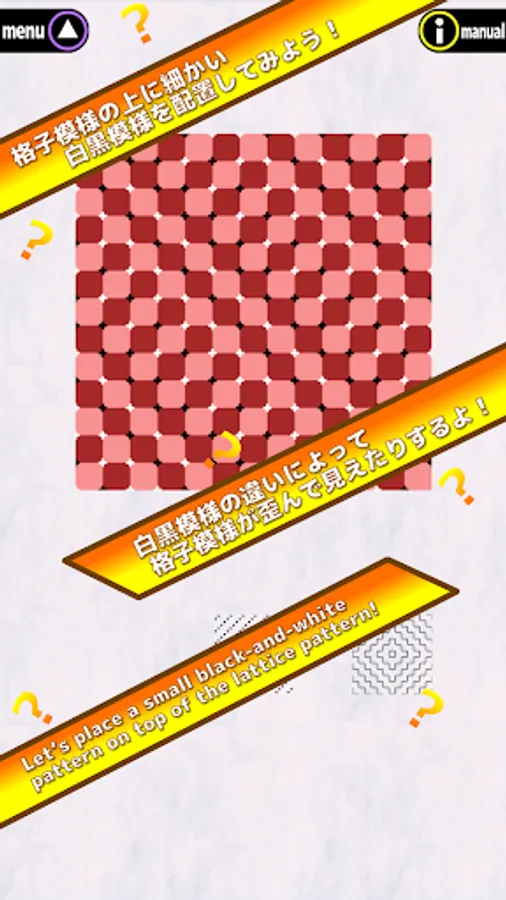 (8)"Is the pattern distorted ?" : Mysterious pattern to which it begins to distort the horizontal, vertical line when putting it in lattice pattern