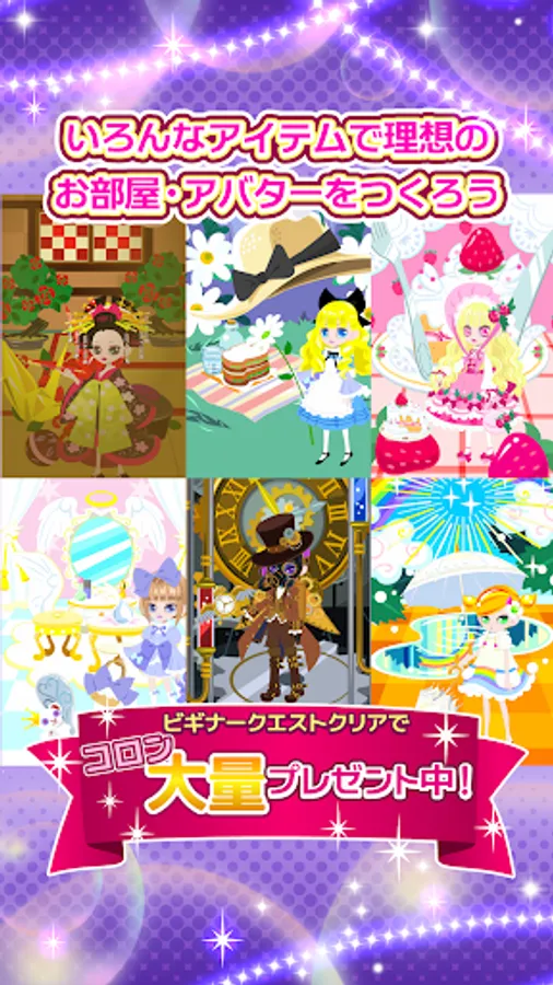 他にも、アバター作品・トピックの投稿、友達のアバター作品・トピックへの「ステキ」、ペットのお世話など、ビギナークエスト&デイリークエストをクリアするとコロンがゲットできます!