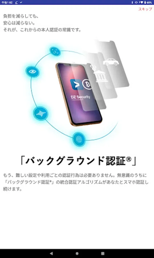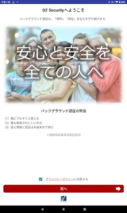 Since it is equipped with "DZ Security®", which is a patented technology called "DZ authentication (= background authentication®)", various information of the user is comprehensively collected appropriately by multiple factors while using the application (background). Continue to protect users while making decisions (unique AI authentication algorithm).