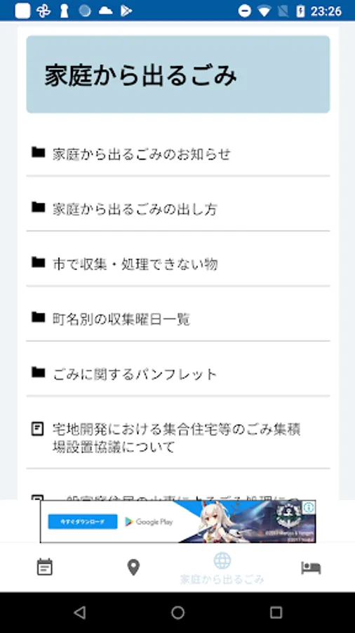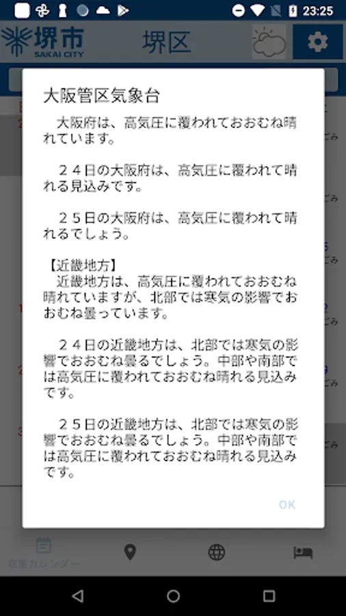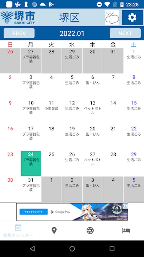 If you set the area of your residence, you can check the sorting method for each item from the calendar.