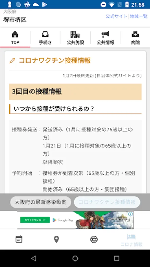 You can check the latest infection trends in Osaka Prefecture and Sakai City vaccination information.