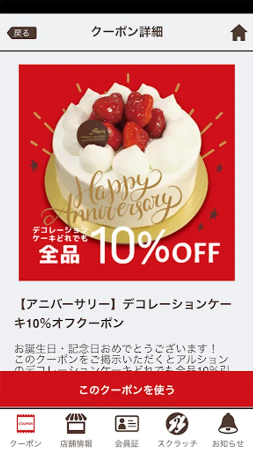 Delivers festive coupons for your own or your family's birthday or anniversary. We offer celebration benefits for each store!