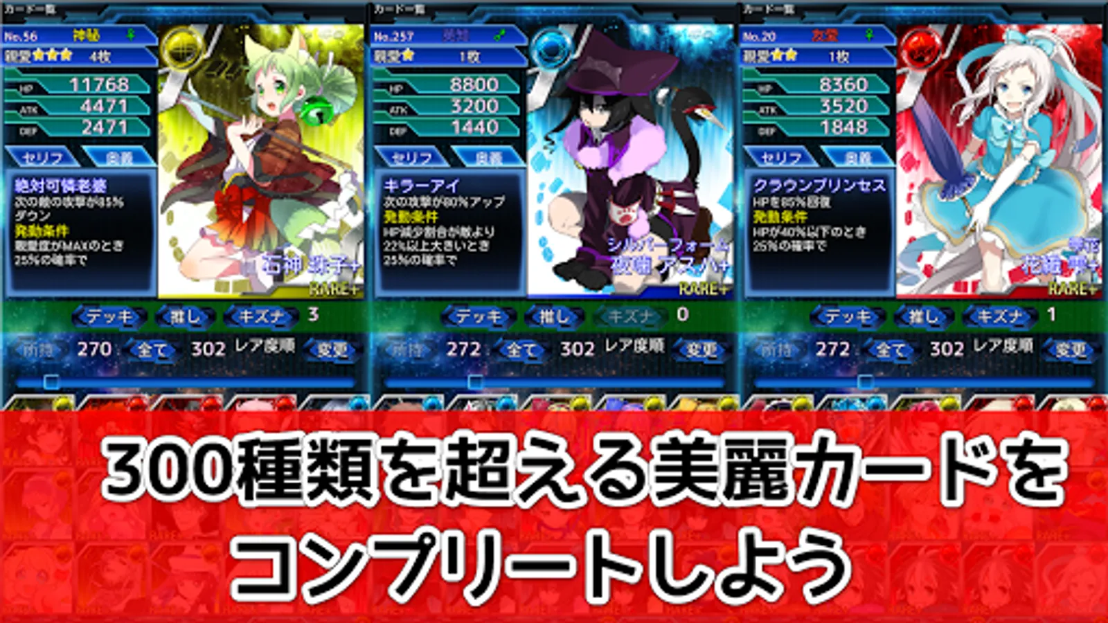 ・ It will become stronger if you raise the degree of friendliness of each card. As you go up one step in one battle, let's fight against a strong enemy after making it to MAX.