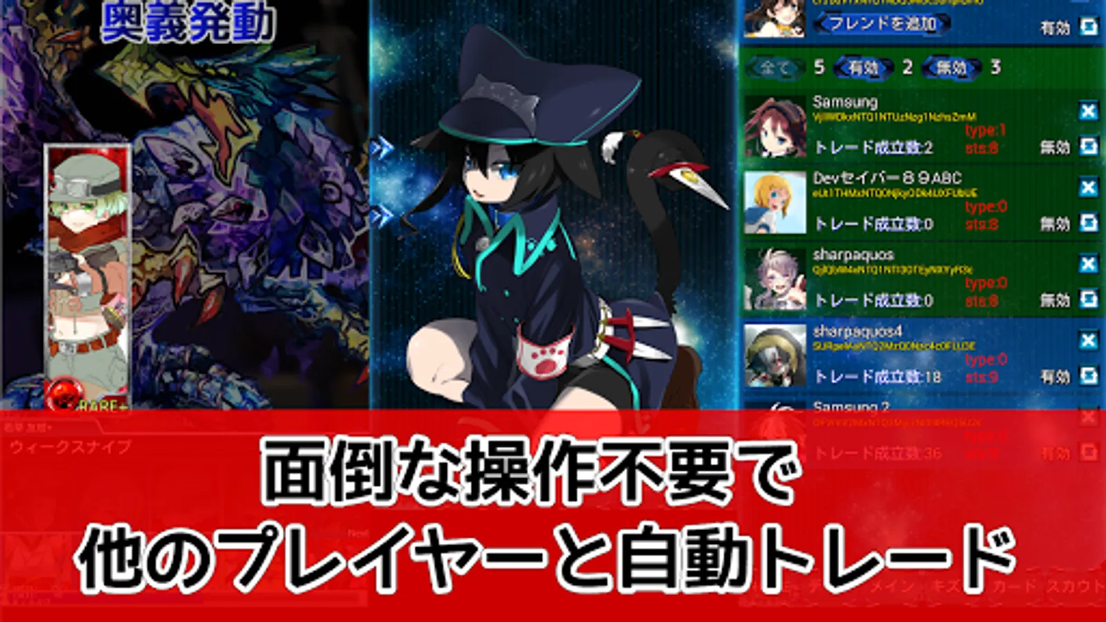 By pressing the friend button, you can post your own page on SNS or send it by email. If you launch and install the app from that page, each other can be friends. Increase your friends and trade cards.