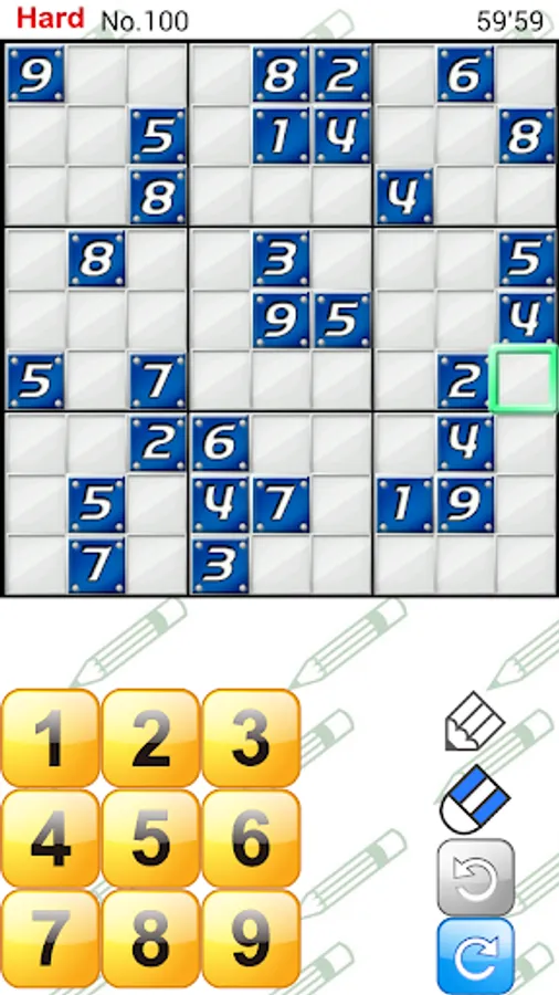Fill a number from 1 to 9 in each box, horizontal row and horizontal row but without the same number overlapping.This game is simple yet has a deep amusement in it. It's also ideal for brain training.