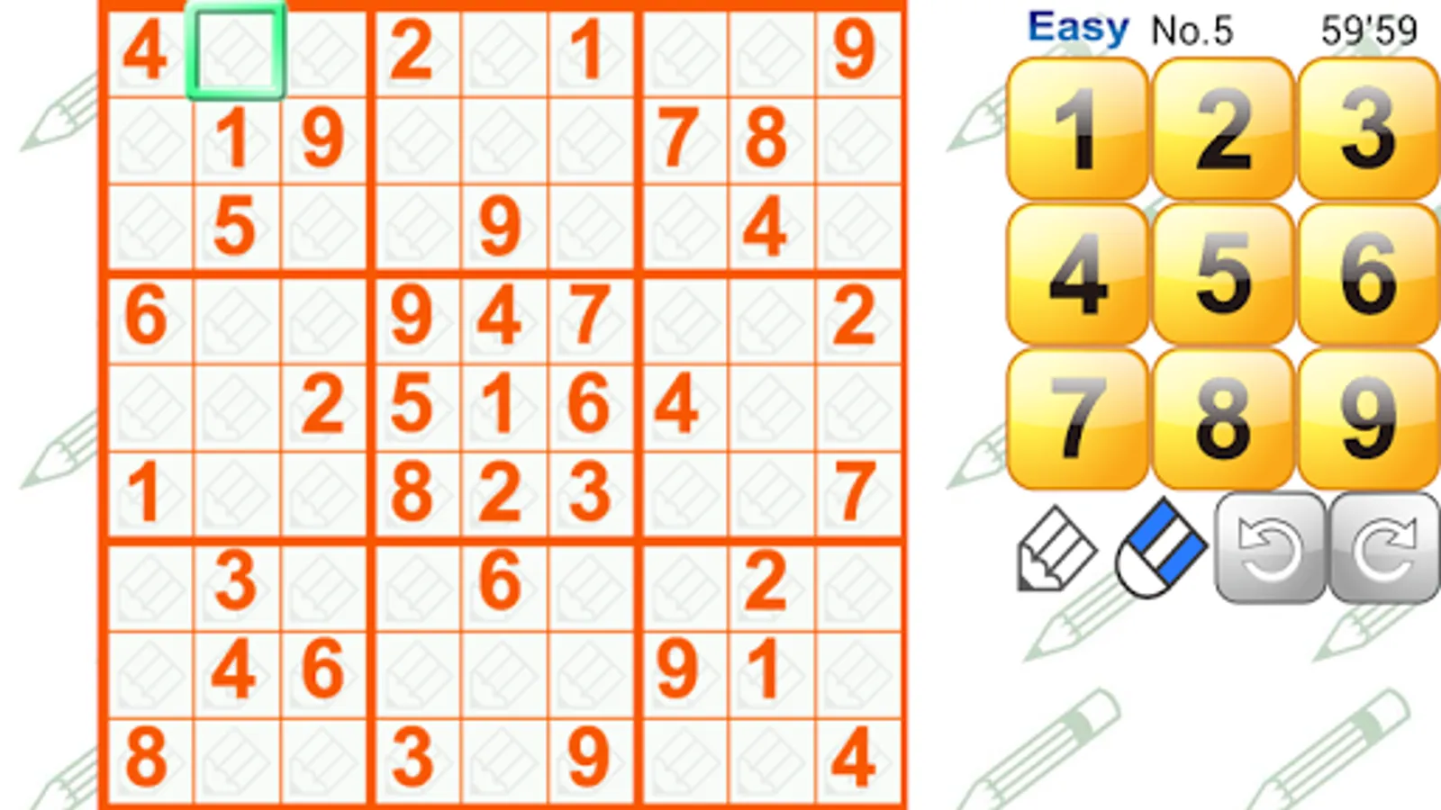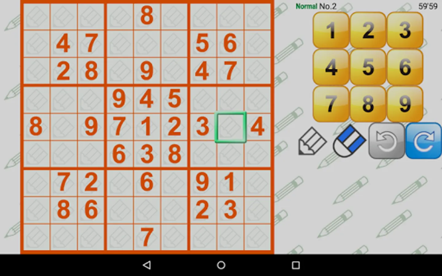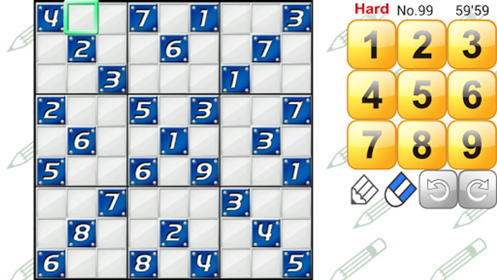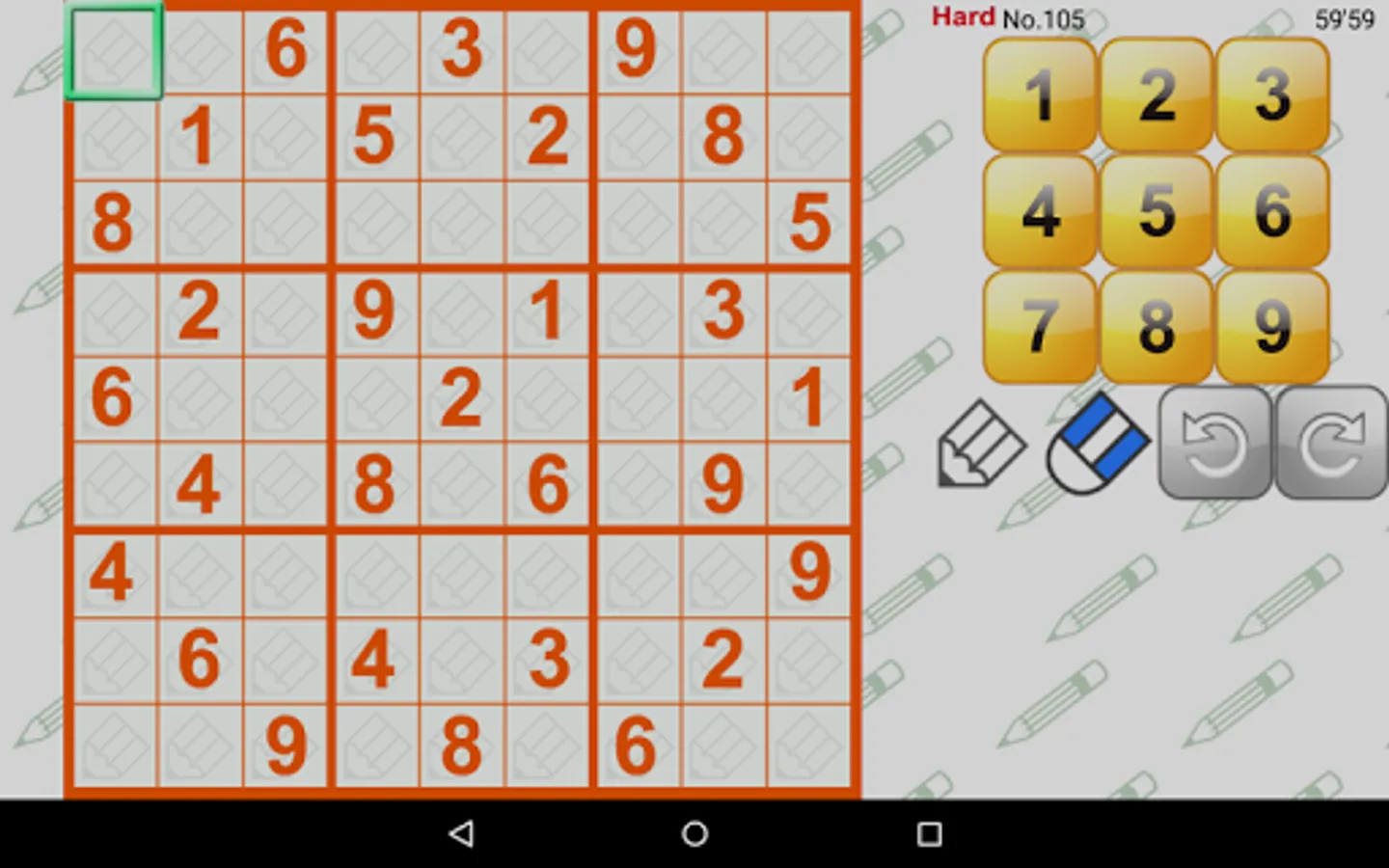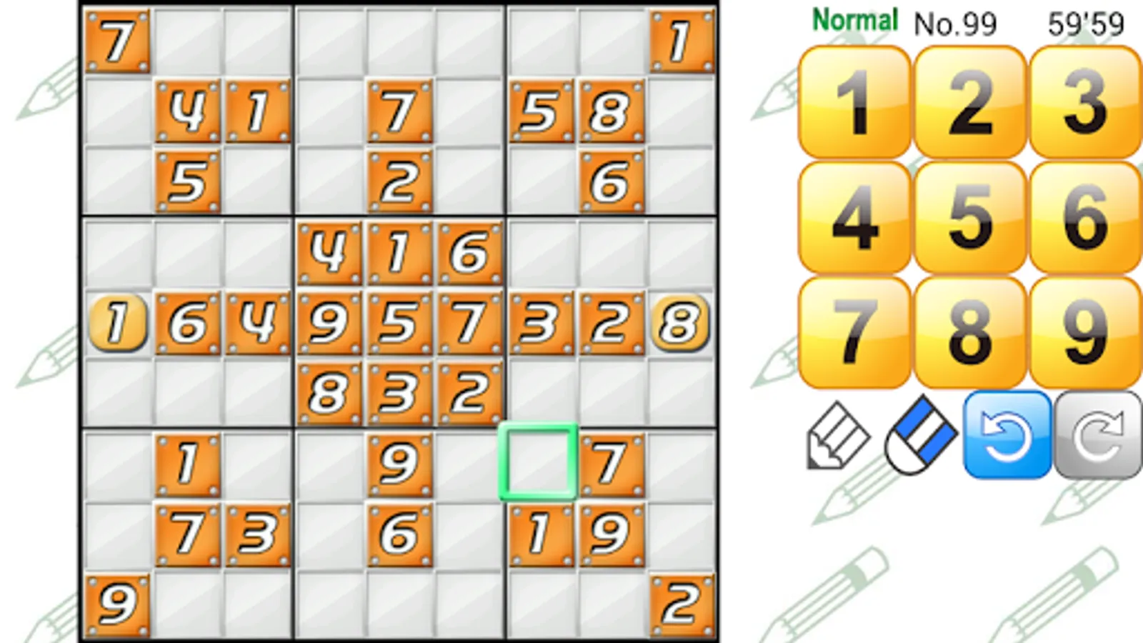 [Medium] For people who have experienced Number Place and found Easy mode unsatisfactory. In this mode, you'll find pretty tough puzzles and easily solvable puzzles.