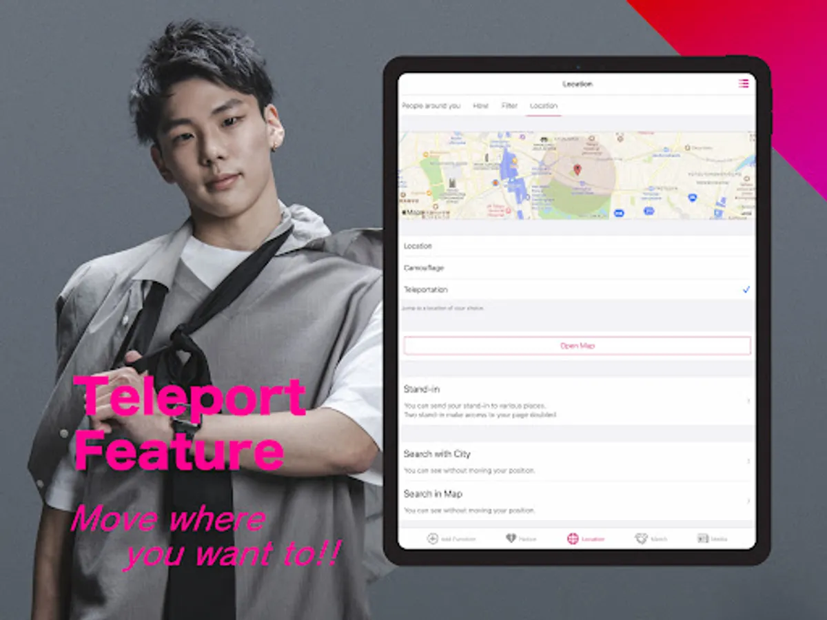 - Camouflage function which allows you to fake your location to other users to protect your privacy.