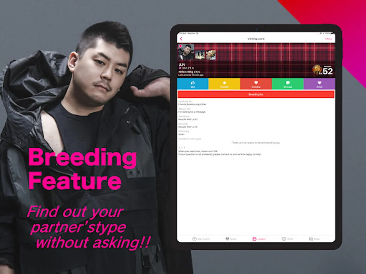 If you find a guy you are interested in, simply select the button "Breeding" from the menu button located upper right corner of home. then , Breeding allows you to find: