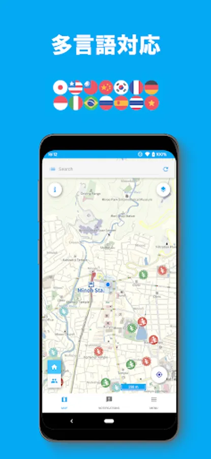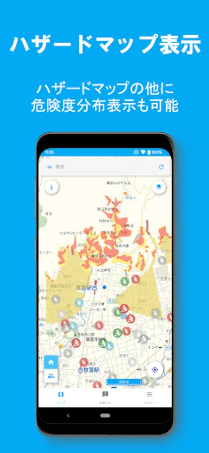 ・ Display of 9 types of hazard maps (earth and sand disaster warning information, tsunami inundation, etc.)