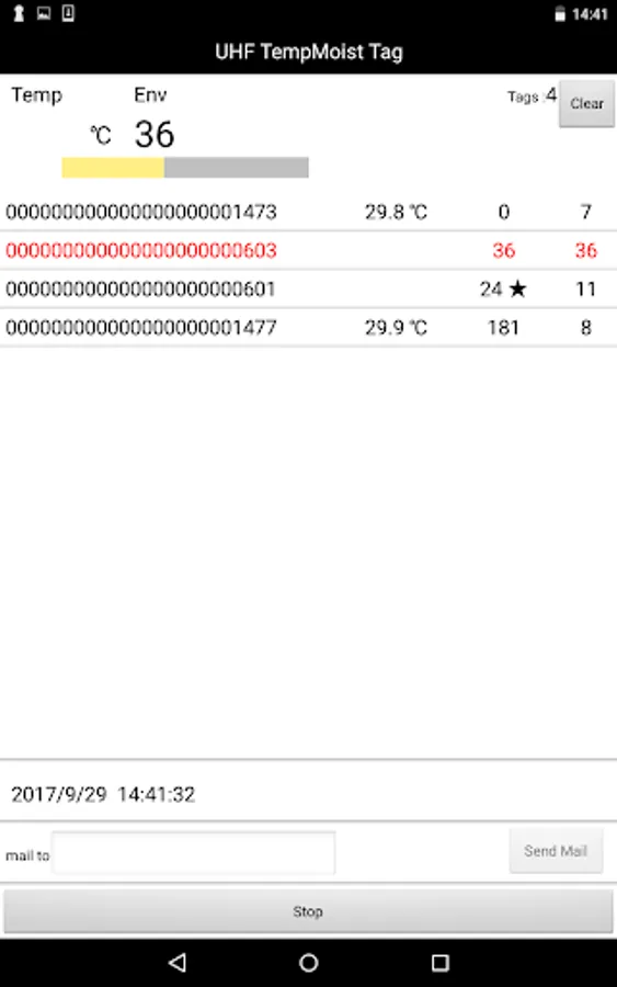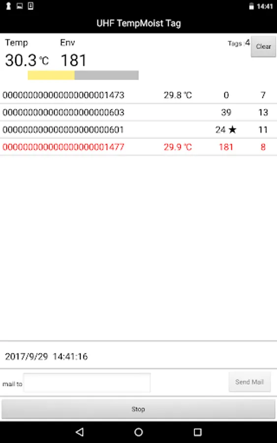 (Temparature/Environment value) and ID(EPC) of RFID sensor tag.