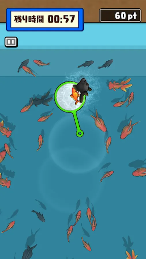 2. At the right time, let go of your finger and the goldfish will scoop up!