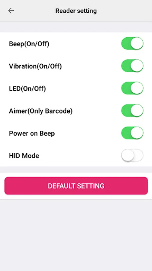 4, Setting reading conditions (beep, vibration, LED, etc.)
