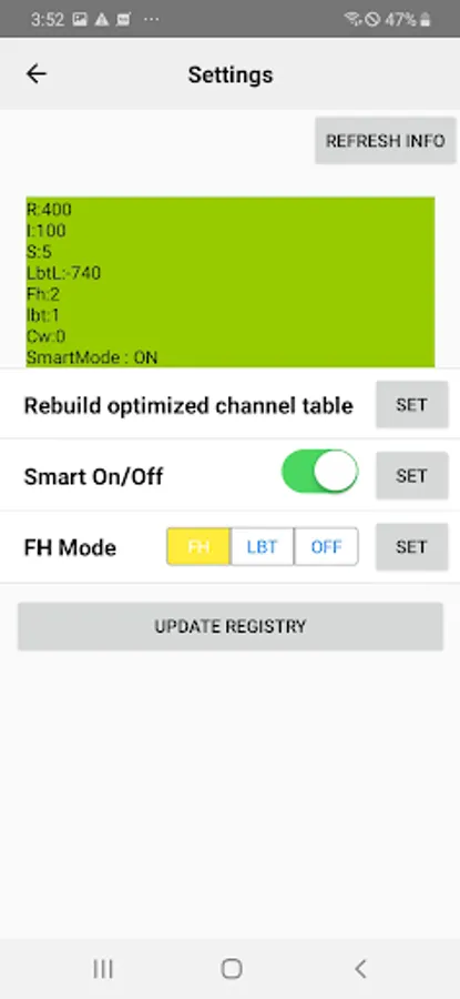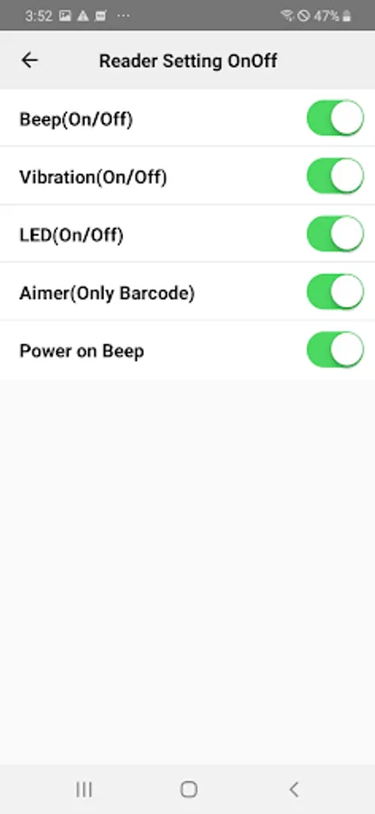 Setting of reading conditions (output, channel, region, vibration, beep, etc.)