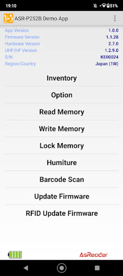 It can receive barcode data/RFID data read from AsReader, and can also be set for AsReader.