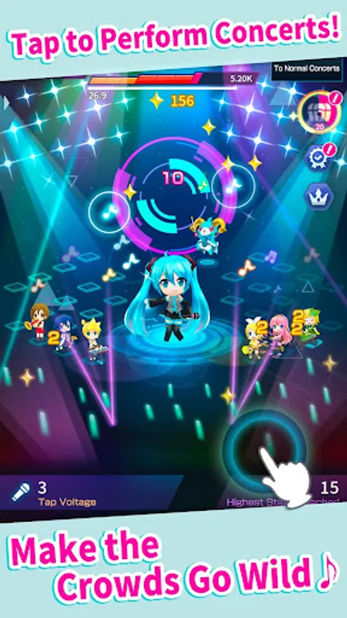 - Tap to make the crowds at Miku's concerts go wild!