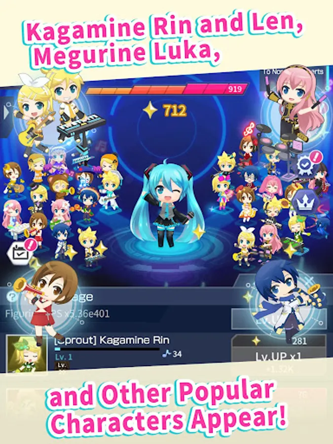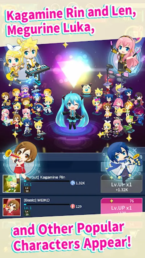 In addition to Hatsune Miku, other popular virtual singers such as Kagamine Rin, Kagamine Len, KAITO, and MEIKO appear!