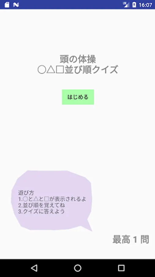 When you start the app ○ △ □ you will see a column aligned at random. Let's remember the order. Since the quiz is questions surrounding ordering, let's solve the quiz!