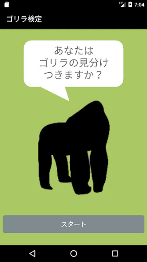 Gorilla test is a simple quiz app that hit the type to see the image of a gorilla.