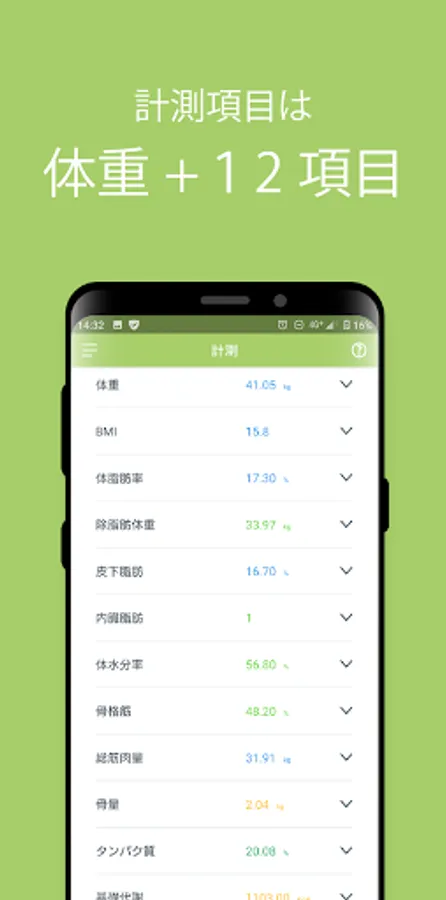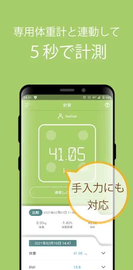 In addition, by linking with a dedicated weight scale, not only weight but also all 13 items such as body fat percentage and total muscle mass are automatically recorded.