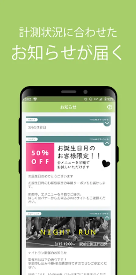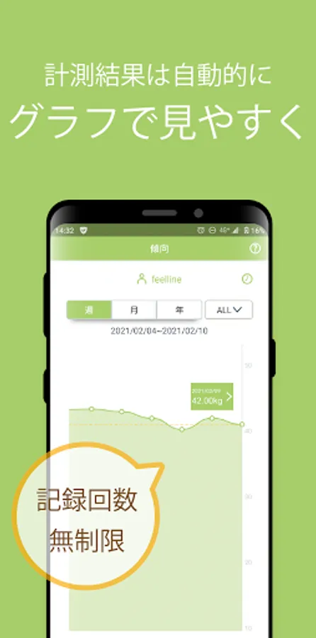 -Graph display "Trend screen": Check daily changes of each item at a glance. You can also switch to the result display by hour in the morning / afternoon.