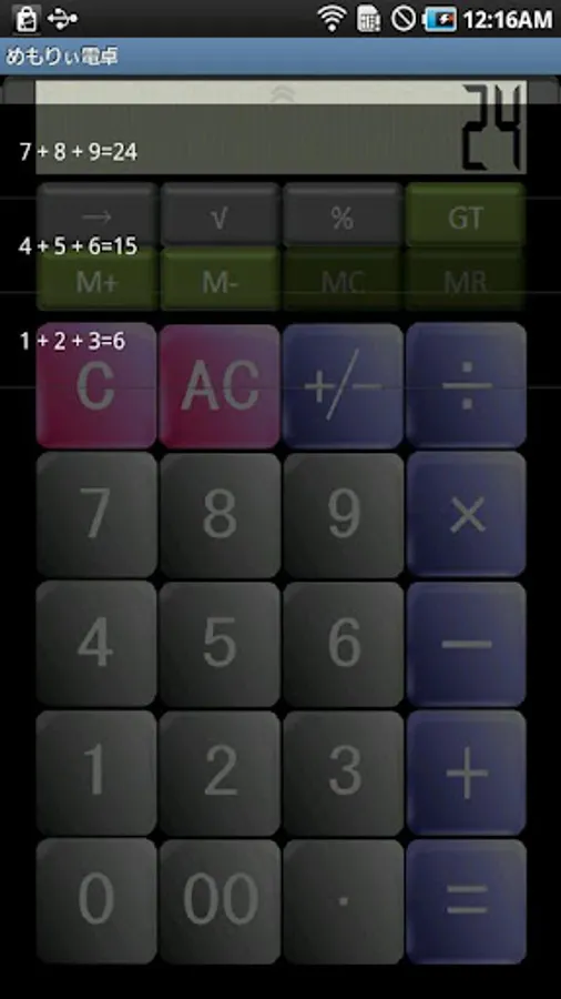 計算式と計算結果はイコールボタン(=)を押したタイミングで自動保存されます。保存された計算を閲覧する場合は、画面下にあるバーを上にフリックします。計算式の一覧から該当の計算式を選択することで、途中から計算をやり直す事ができます。