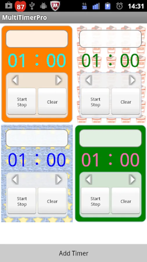 (1) After starting the app, please add the timer by tapping the Add button at the bottom of the screen.