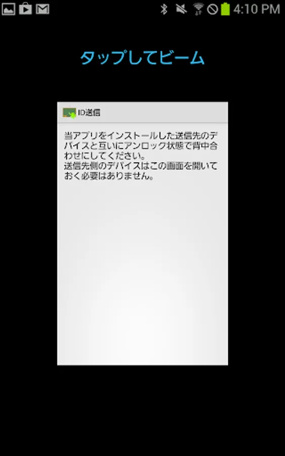• The back-to-back with (installed our application) device to select "ID transmission" from the menu screen, want someone to register the own terminal,