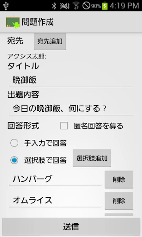 Questioner is possible to broadcast a question to the device address you have registered in advance.