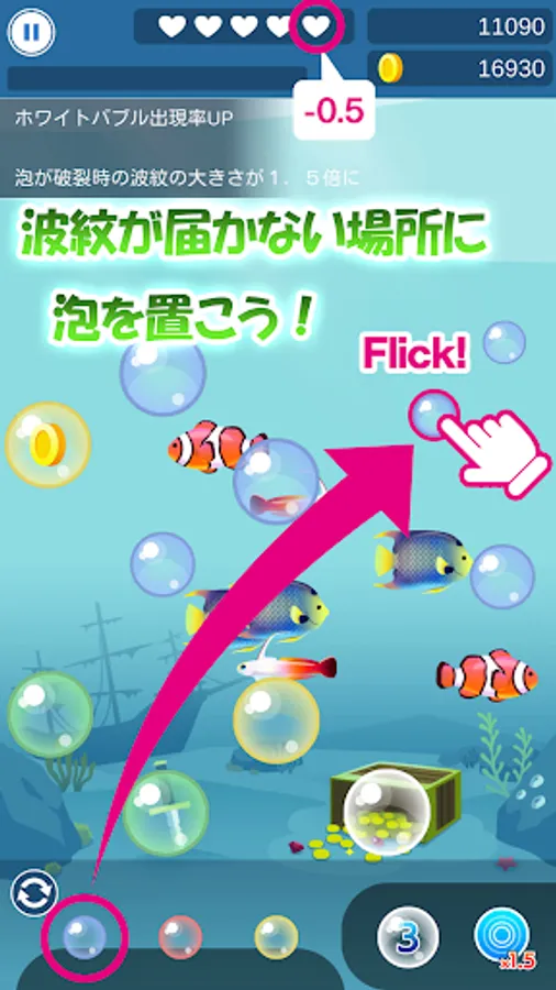 ・ Fever occurs with 3combo! The bubbles that come out turn into coin bubbles!