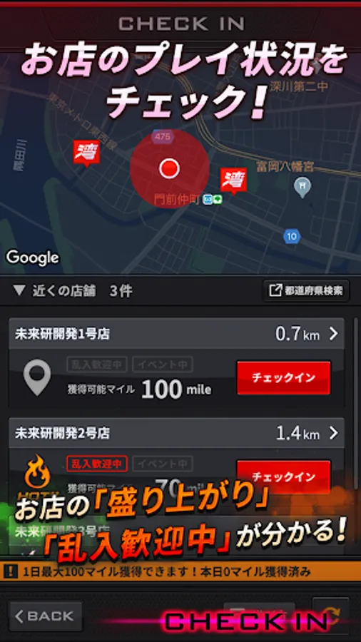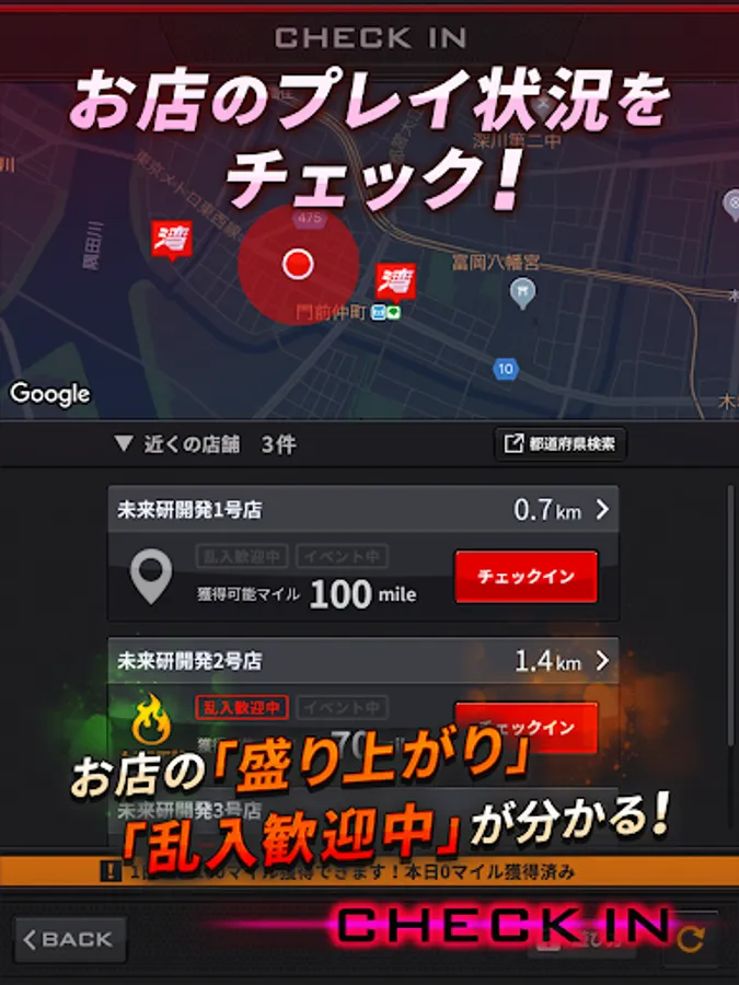 ・ Check in near the store and get miles! The closer you are to the store, the more you can get!