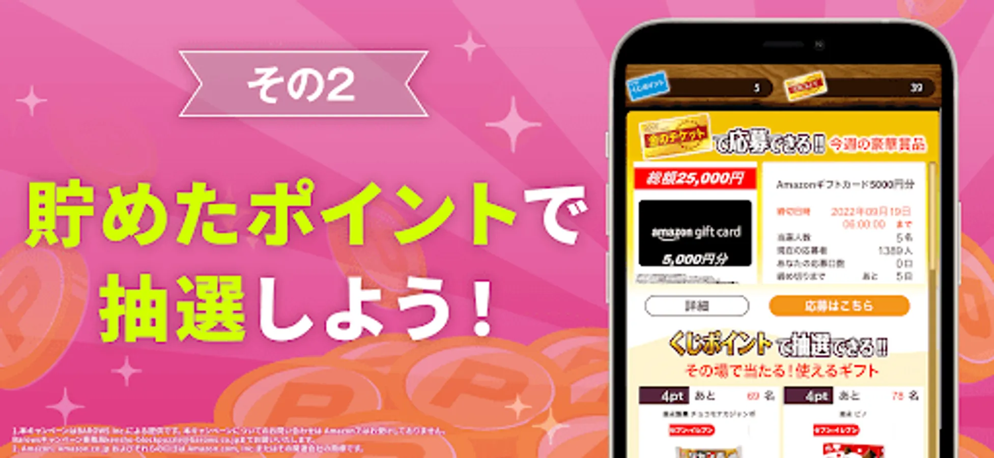 You can apply for sweepstakes with gold tickets obtained from login bonuses and mission achievements. Luxury prizes are updated once a week.