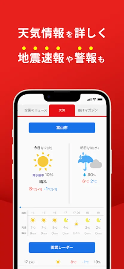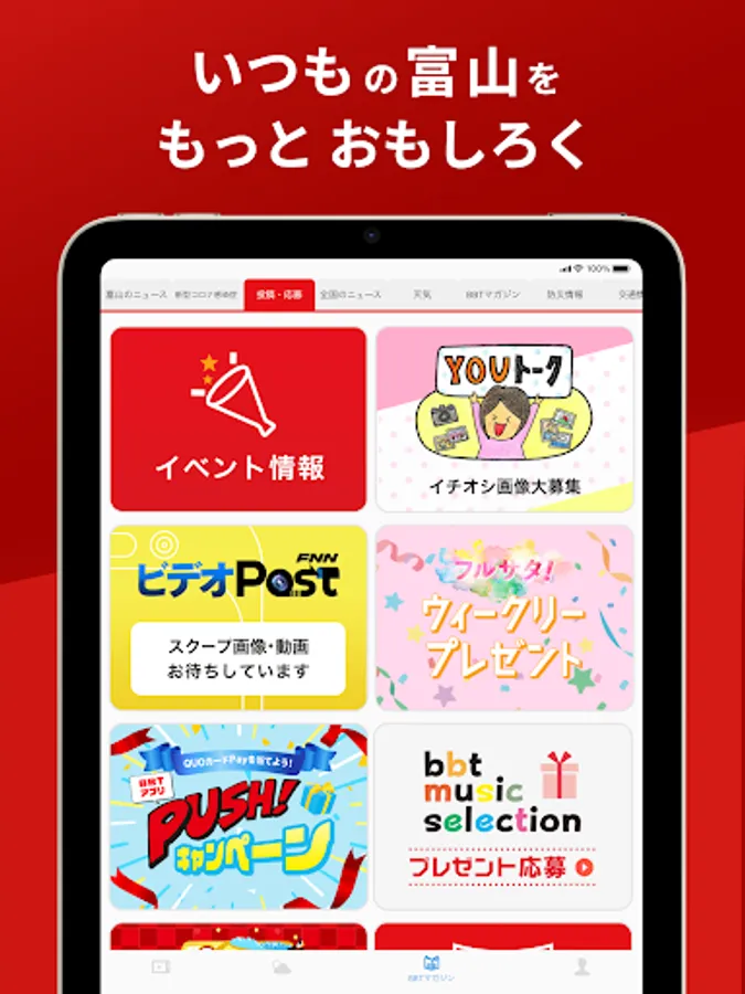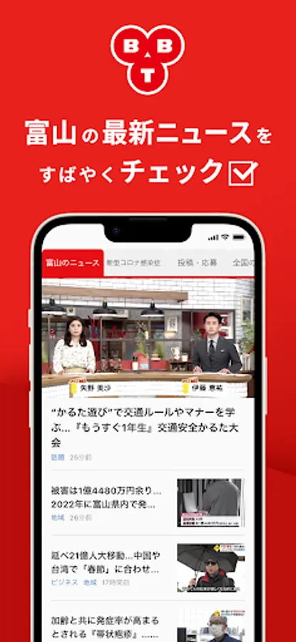 It is a "BBT app" with the desire to be a TV station that is even more trusted by everyone in Toyama Prefecture.