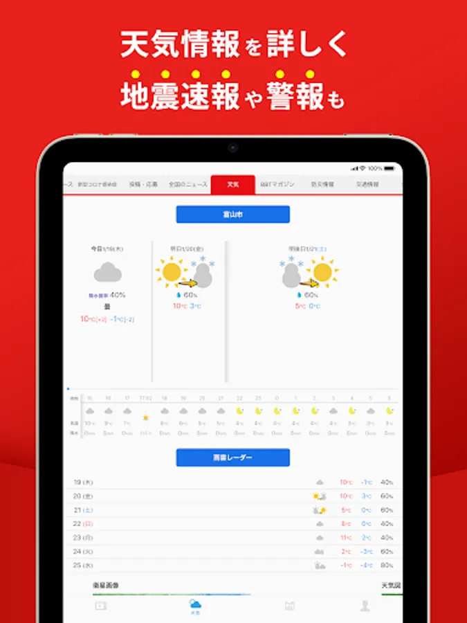 ・ Posted the latest weather information in Toyama prefecture. We will automatically recognize your current location and deliver a suitable forecast.