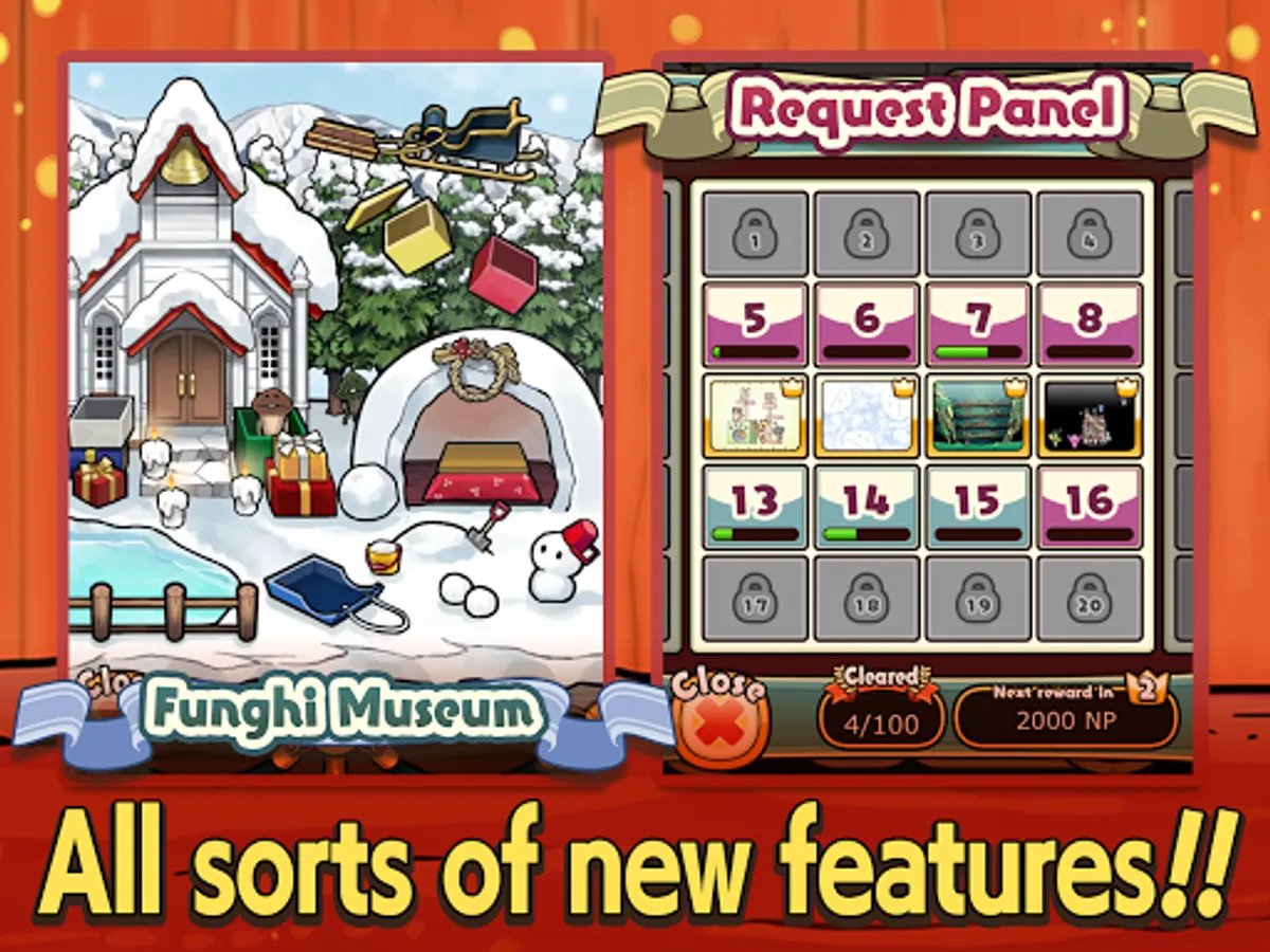 - New features exclusive to Mushroom Garden Prime! Request Panel and Funghi Museum