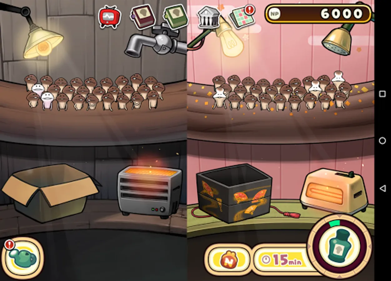 Feed and pick funghi from both gardens in one go! Harvest more funghi than ever before! What a rush!