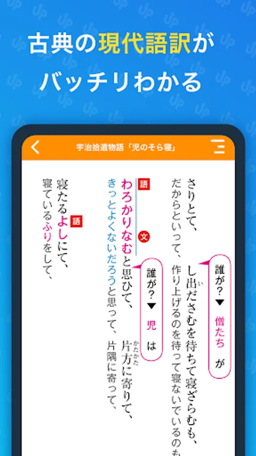 You can see the modern language translation of the full text of the source text, and you can also check the subject, demonstrative word, and part-of-speech breakdown that are often asked in ancient texts with a single "ON" or "OFF" button.