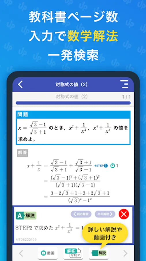 You can quickly search for similar problems in textbooks and supplementary teaching materials. Based on similar problems, you can check the "solution method" in two stages, STEP commentary and detailed commentary, so you can acquire general "solving power".